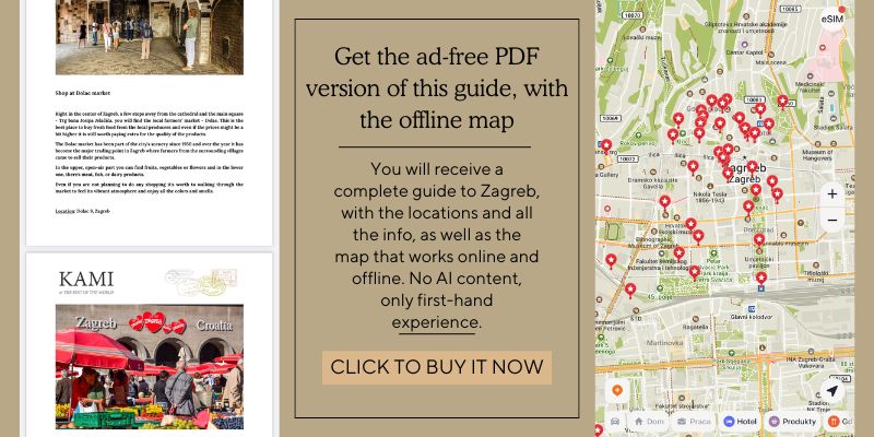 You can purchase the PDF, ad-free version of this guide, together with the map that works offline, to make your trip to Zagreb smoother. On the map, I included all the attractions mentioned in this article (including their descriptions) as well as recommended restaurants and cafes and useful public transport stops. Click here or on the photo below to get your guide with a map!