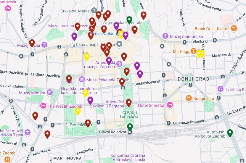 Map of Zagreb attractions